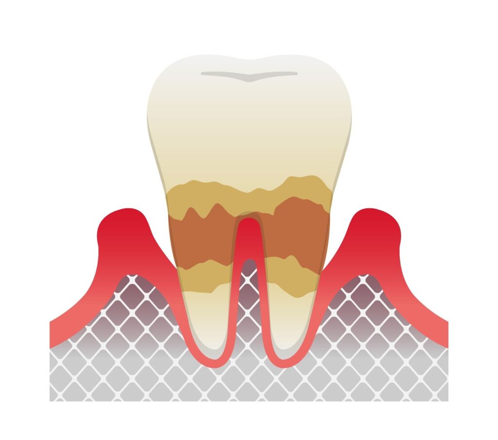 歯周病は歯周ポケットにプラークや歯石が蓄積することで発症します。プラーク内で歯周病菌が繁殖し、毒素を出すと、歯肉に炎症が起こってしまいます。